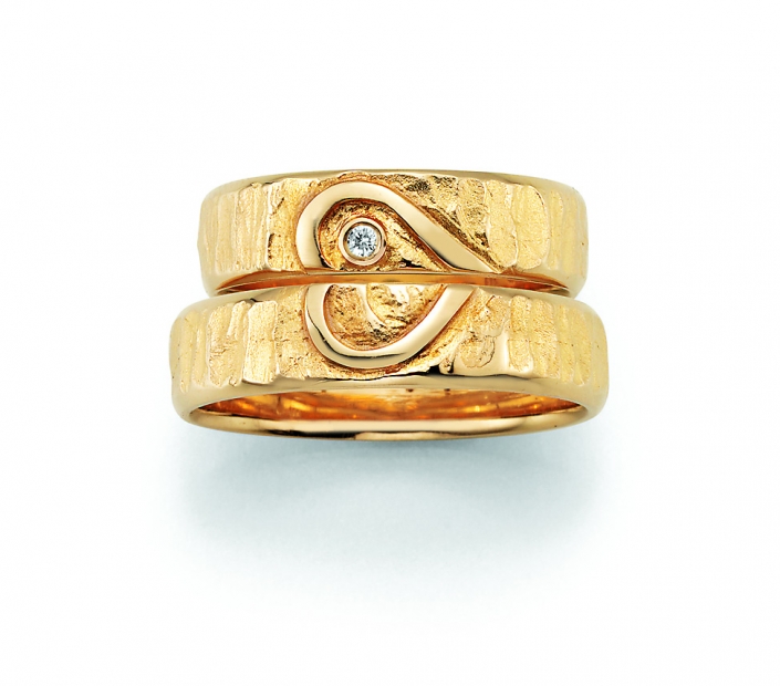 Seit frühesten Zeiten bedient man sich spezieller Zeichen, um seinem Partner seine Liebe zum Ausdruck bringen zu können und um seine ganz persönliche Liebesgeschichte zu erzählen. In unserer Collection „Signs of Love“ haben wir die Symbolik des Ringes mit Symbolen der Liebe kombiniert: auf neun Ringpaaren läuft jeweils ein spezielles Liebeszeichen über beide Ringe, es wird aber erst eindeutig erkennbar, wenn beide Ringe nebeneinander gehalten werden. Dann wird aus den beiden Hälften ein Ganzes. Jeder Ring ist ein Unikat, von Hand gefertigt, einzigartig und unverwechselbar.