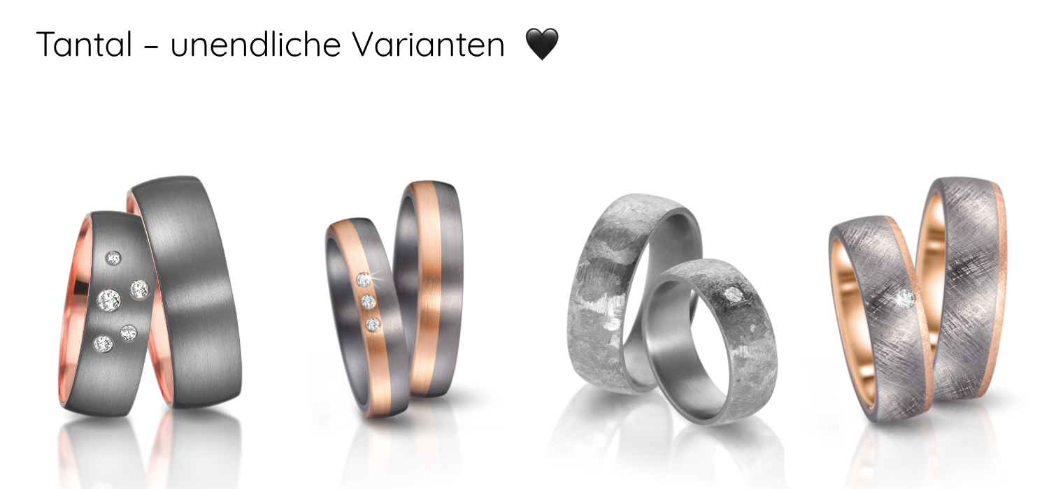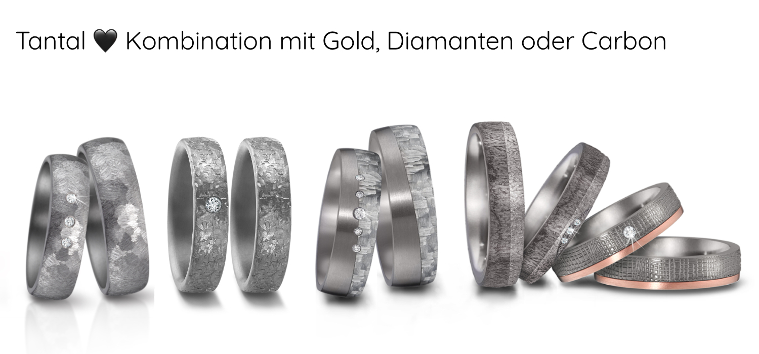 Unsere Tantal-Ringe haben eine graphitgraue Farbe, die beeindruckend beständig ist. Da es sich hierbei um eines der härtesten Metalle in der Schmuckverarbeitung handelt, ist die Fertigung zwar sehr anspruchsvoll, aber euer vollendeter Ring auch besonders robust. So haben wir im Raum Baden-Baden die Erfahrung gemacht, dass Tantal im Vergleich zu anderen Edelmetallen kratzfester ist.
