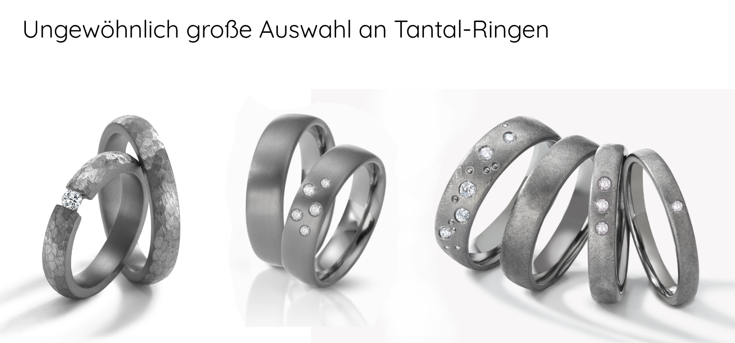 Eheringe aus Tantal haben eine sehr dunkle Farbe, welche einen beeindruckenden Kontrast zu den Diamanten bildet, die ihr auf euren Ringen einlasst, sodass diese noch schöner funkeln und besser zu Geltung kommen. Aber auch wenn ihr euch unsere schlicht gehaltenen Herrenringe im Raum Baden-Baden anseht, werdet ihr feststellen: Das Material wirkt auch ohne zusätzliche Diamanten und sorgt für einen besonders edlen Look.