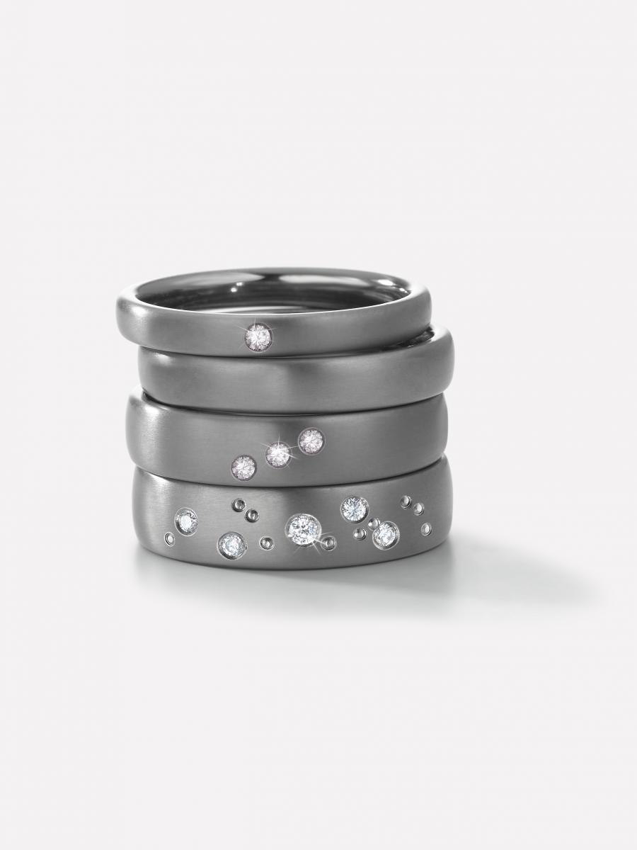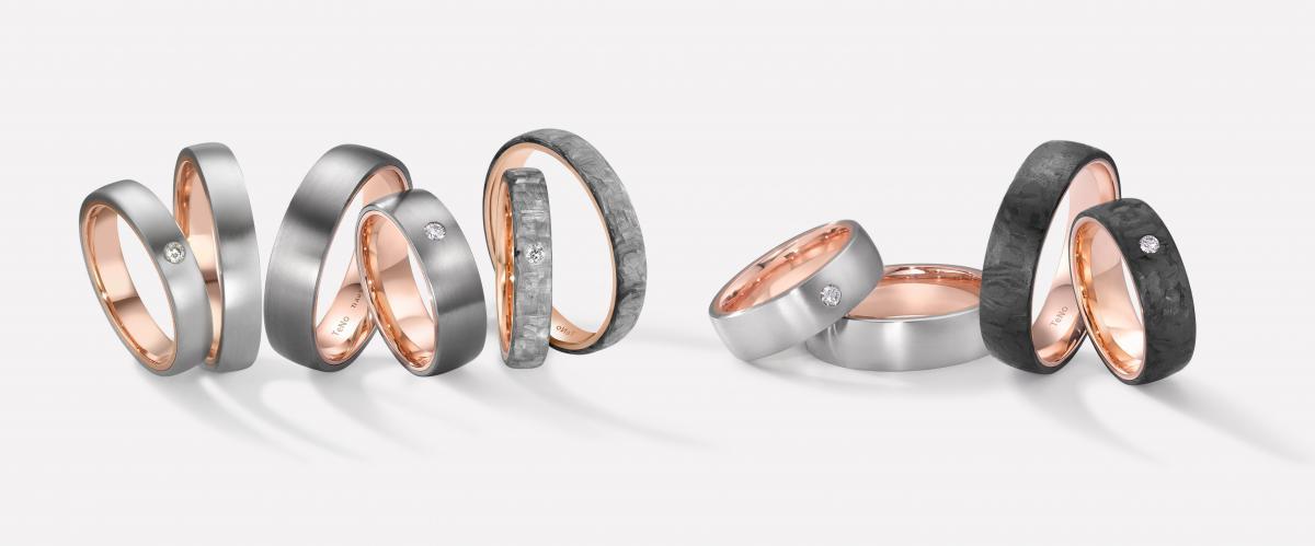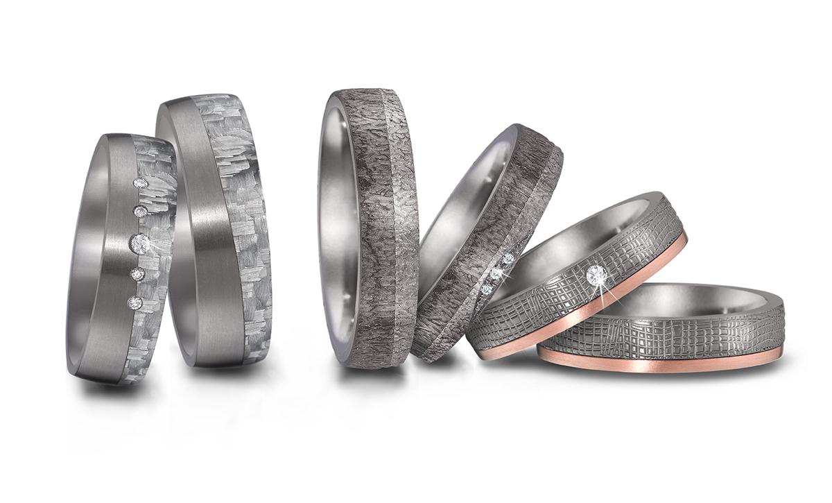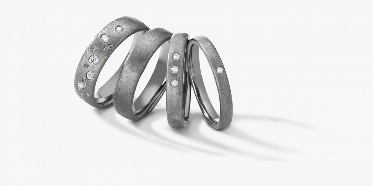 TANTAL ist wie geschaffen für außergewöhnliche Trauringe. Für Menschen, die das Erlesene suchen: der Exot unter den Schmuckmetallen: schwer, extrem robust und gleichzeitig mit einer edel glänzenden, graphitgrauen Farbe. Diese außergewöhnlichen, kostbaren Trauringe sind erhältlich pur und in Kombination mit Gold, Diamanten oder Carbon, Titan & Stahl… unendliche Varianten dieser außergewöhnlichen, kostbaren Trauringe findet Ihr bei uns im Geschäft oder in unserem Konfigurator. Preise: ab 470,- Euro /Einzelring
